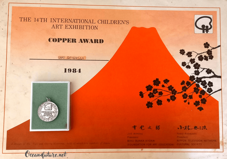 Throughout his schooling, Sami Souissi was always among the best students of his generation. At the age of 14, he won a medal in the 14th International Children’s Art Exhibition hosted by the Japan (free drawing, see certificate and medal on the right). At the age of 17, he was selected to take part in the National Olympiads of Mathematics. In 1989, he received a prize from the Tunisian Society of Physics for having obtained a score of 19.5/20 (97.5/100) in the physics exam of the national baccalaureate competition (high school certificate) allowing him to be in the top 5 best students in this exam.